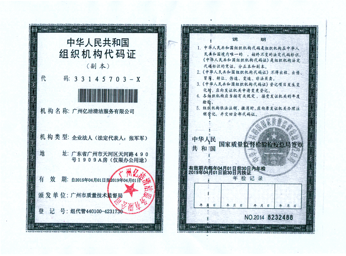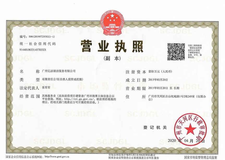 廣州億潔清潔服務(wù)有限公司是經(jīng)廣州市工商行政管理局批準(zhǔn)成立的(注冊資本:100萬元人民幣)。具有獨(dú)立法人資質(zhì)。公司成立2015年,公司具備完善的管理體系和高素質(zhì)管理隊(duì)伍,擁有特種技術(shù)人員33名,保潔服務(wù)人員上萬名,覆蓋廣州市,能及時(shí)調(diào)配并快速投入高效運(yùn)行。我們的每個(gè)員工都經(jīng)過公司的嚴(yán)格篩選,嚴(yán)格培訓(xùn),定期培訓(xùn)后持證上崗以保證服務(wù)品質(zhì),保障客戶的權(quán)利,利益,形象等不受損失。 廣州億潔清潔公司是一家設(shè)備齊全,技術(shù)強(qiáng)大的綜合型清潔服務(wù)公司,為客戶提供完善服務(wù)尊定了堅(jiān)定的基礎(chǔ)。 司于2010年全面推行了ISO9001質(zhì)量管理體系認(rèn)證和ISO14001國際環(huán)保體系認(rèn)證。先后獲得廣州高層建筑外墻清洗維修作業(yè)【安全資質(zhì)證書】、【廣州環(huán)衛(wèi)企業(yè)等級(jí)證書C級(jí)資質(zhì)】、廣州疾控中心頒發(fā)的【四害消殺服務(wù)資質(zhì)證】、【空氣治理A級(jí)資質(zhì)】、中國石材協(xié)會(huì)頒發(fā)的【石材資質(zhì)B級(jí)資質(zhì)】等。 廣州億潔清潔服務(wù)有限公司致力于打造專業(yè)、實(shí)惠、靠譜的保潔服務(wù)公司,把專業(yè)的事情交給專業(yè)的我們,您放心! 億潔清潔服務(wù)項(xiàng)目: 廣州保潔服務(wù):新建樓宇、別墅、酒店、醫(yī)院、辦公樓、賓館、企事業(yè)單位廠房竣工后開荒及裝修后精細(xì)保潔.工程保潔服務(wù)。 廣州物業(yè)托管:為廣州市各大企事業(yè)單位、賓館、政府機(jī)關(guān)、小區(qū)物業(yè)、酒店及廠房提供專業(yè)化保潔、園林、設(shè)施維護(hù)等管理服務(wù)。 廣州高空作業(yè):高空玻璃幕...[詳情]